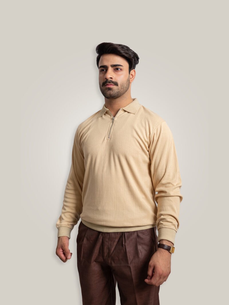 Crafted with premium knitted cotton, this versatile polo shirt seamlessly transitions from casual outings to more formal occasions. Its full-sleeve design offers warmth and comfort, making it a perfect choice for both spring and autumn seasons.