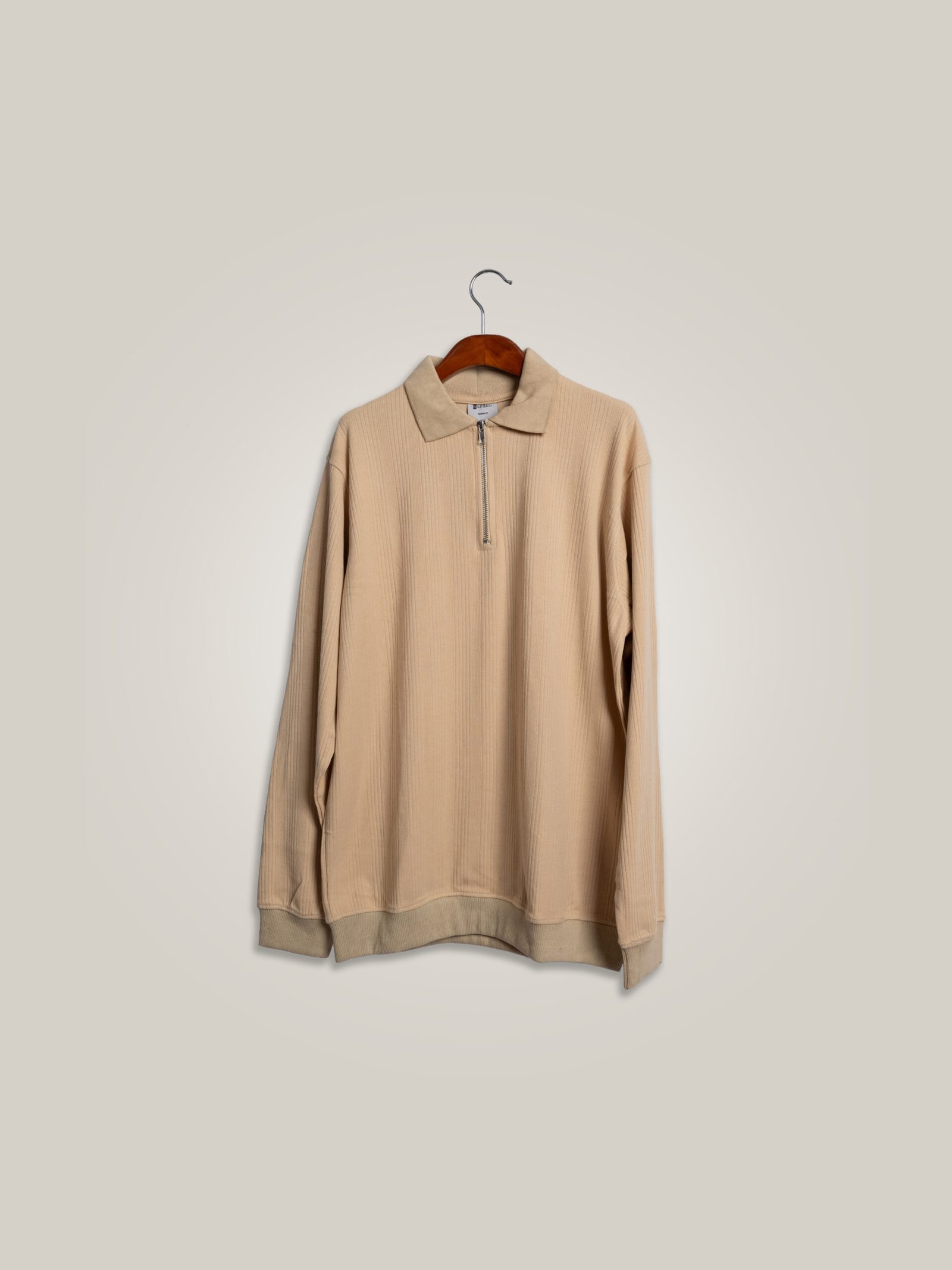 Brown Knitted Zipper Polo - Small was added to the cart.