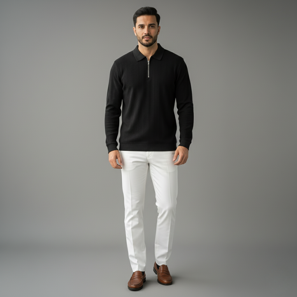 + Free ShippingCrafted with premium knitted cotton, this versatile polo shirt seamlessly transitions from casual outings to more formal occasions. Its full-sleeve design offers warmth and comfort, making it a perfect choice for both spring and autumn seasons.